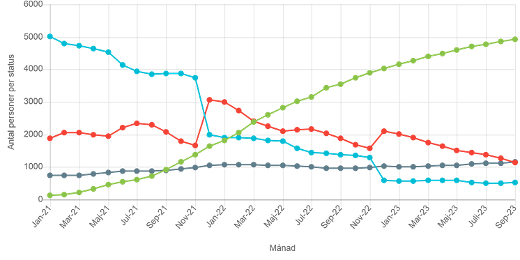 går mycket bra! Hittills (sept 2023) har 4.936 unga klarat den tuffa hinderbanan (kämpa med skolan, ta studenten, skaffa fast jobb inom 6 månader, ofta mitt i pandemikrisen). De har blivit ett nyttigt tillskott av vårdpersonal, byggjobbare, mekaniker, bussförare etc.