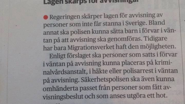 Våra vänner vill inte leva längre. Det är vad de säger till oss. Vi svarar med våra lugnaste röster, viskar att allt kommer att bli bra. Tror vi det själva? Vi tror snart inte på något. Allra minst på er politiker. Vi fick ert senaste meddelande i form av en notis: att våra nya familjemedlemmar, våra elever, våra patienter, våra skolkamrater, våra älskade och våra vänner ska kunna sättas i arrest eller på kriminalvårdsanstalt när de fått sitt utvisningsbeslut. Även om de är barn.