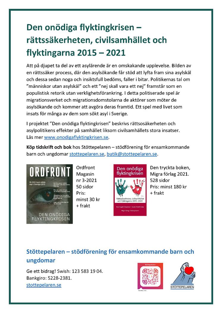 Den onödiga flyktingkrisen - rättssäkerheten, civilsamhället och flyktingarna 2015-2021