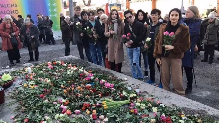 En av dem som lade ner blommor var sångerskan Aminah Al Fakir, som också läste en text.