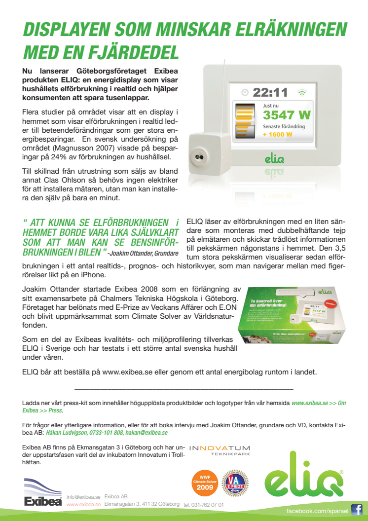 Nu lanserar Exibea produkten ELIQ: en energidisplay som visar hushållets elförbrukning i realtid och hjälper konsumenten att spara tusenlappar.
