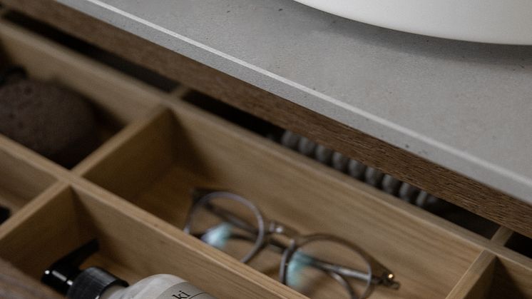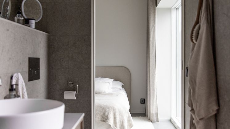 "Med två små barn ville vi att badrummen skulle vara funktionella men utan att vara tråkiga. Vi önskade stora ytor för hela familjen samt bra förvaring och belysning. Till Alfreds och mitt badrum har vi egen ingång från sovrummet. Det är väldigt lyxigt att kliva upp på morgonen och svepa in sig i en morgonrock och göra sig i ordning för dagen."