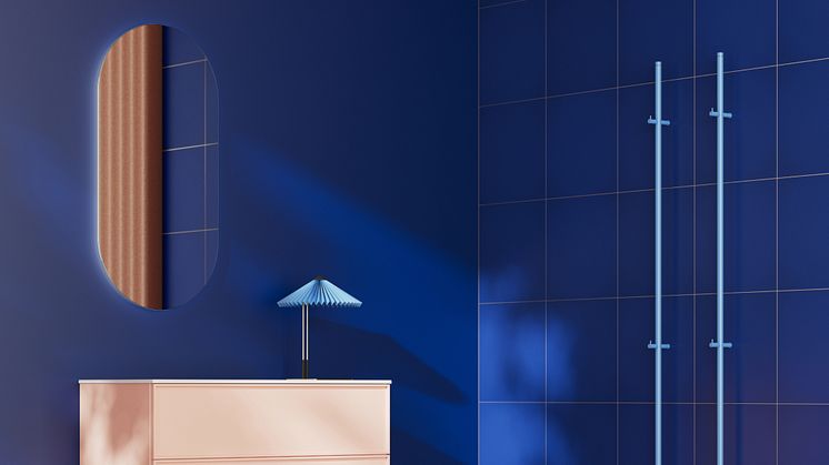 I samarbete med NCS tolkar INR färgpaletten Symbiosis – en av 2026 års fyra färgtrender i NCS Colours Beyond 2026+. En djupblå kulör sveper in badrummet med känsla av stillhet och förundran – som ett hav av möjligheter där teknik, natur och mänskligt uttryck smälter samman. Här är badrummet inte bara en plats för funktion, utan också för själslig och kroppslig förnyelse.