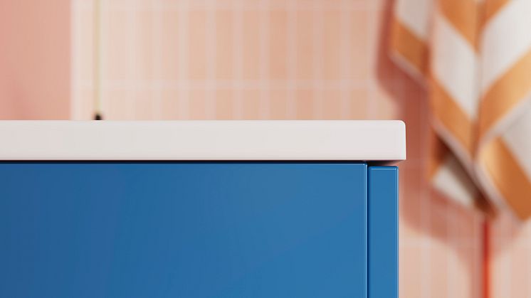 Alla badrumsmöbler från INR kommer med ytbehandlingen TX Top Extreme™ och 15 års garanti. NCS S 2060-R80B.