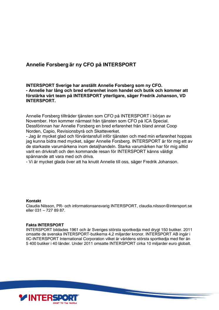 INTERSPORT Sverige har anställt Annelie Forsberg som ny CFO.