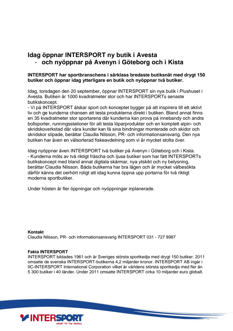 Idag öppnar INTERSPORT ny butik i Avesta - och nyöppnar på Avenyn i Göteborg och i Kista