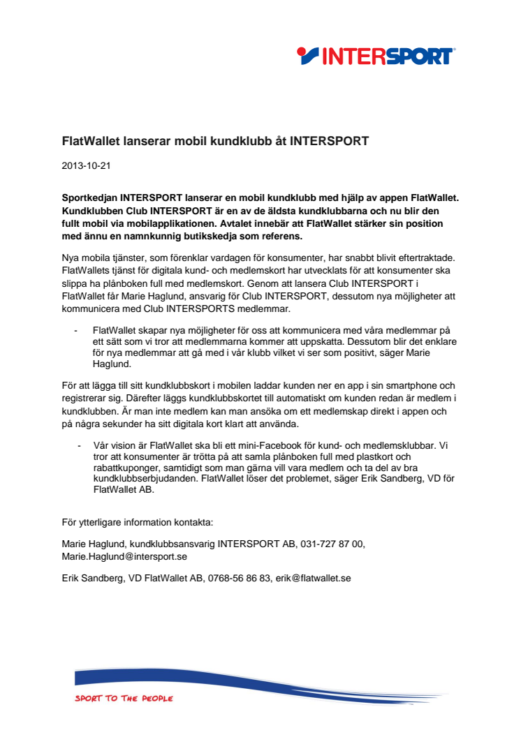 INTERSPORT lanserar mobil kundklubb med FlatWallet