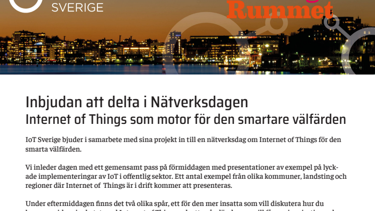 Inbjudan att delta i Nätverksdagen Internet of Things som motor för den smartare välfärden