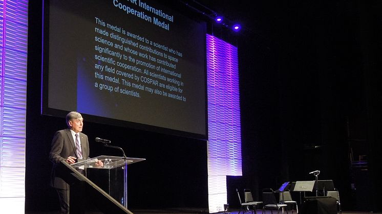 Medaljceremonin ägde rum under COSPAR Scientific Assembly i Pasadena, Kalifornien, USA, den 15 juli. Den internationella kommittén för rymdforskning, COSPAR (Committee on Space Research) arbetar för att på en internationell nivå främja vetenskaplig rymdforskning med tonvikt på utbytet av resultat, information och åsikter och att tillhandahålla ett forum som är öppet för alla forskare för diskussion om problem som kan påverka vetenskaplig rymdforskning.