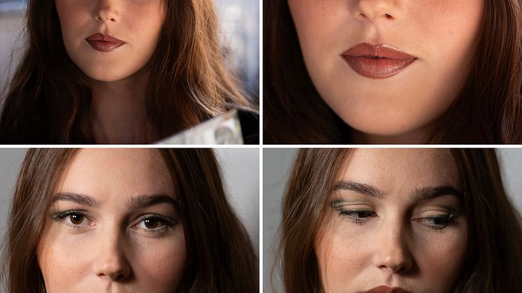 Genom att kombinera den neongröna nyansen med mjuka toner av choklad och nougat blir trenden bärbar även på hösten. 90-talets bruna läppar gör en stor comeback och kombineras med 60-talets skarpa eyeliners och cut crease-skuggor.