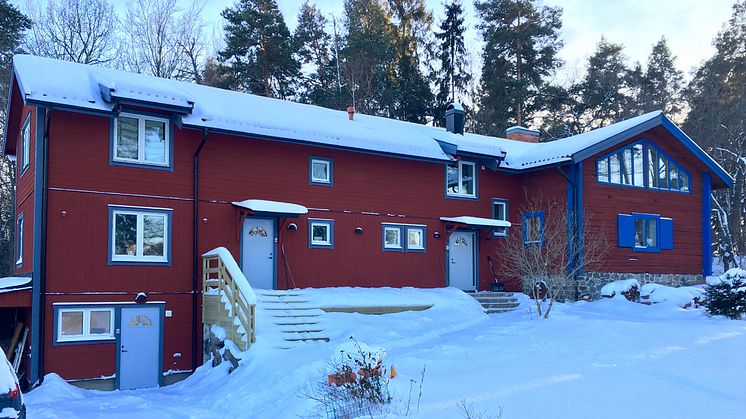 I en villabrand 2016 på Lidingö kunde delar av ett hus från tidigt 1900-tal räddas, men en stor del av huset skadades så svårt att det fick rivas. Huset byggdes upp igen och fick en ny ytterväggskonstruktion med minimala köld- och ljudbryggor. Man valde en ventilerad fasad och fann även ett nytt sätt att fixera fasadisoleringen med glasull från ISOVER.