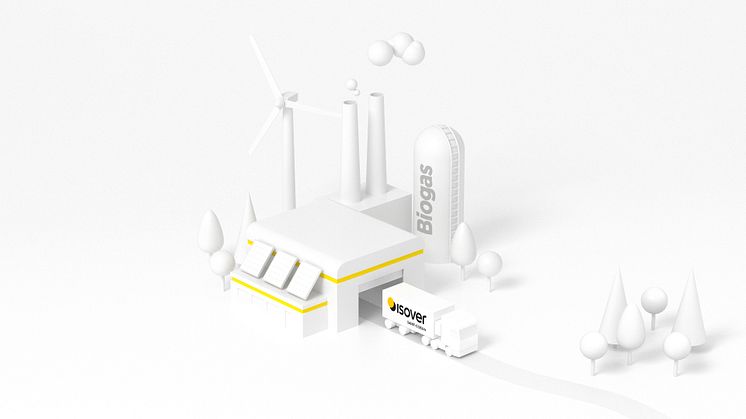 Isover ställer om energianvändningen från naturgas till biogas. Från den första januari i år är 50 procent av gasen som används i tillverkningen biogas. Omställningen väntas reducera de produktionsrelaterade utsläppen av växthusgaser med 40 procent, vilket användare av materialen kommer att kunna tillgodoräkna sig i sina egna klimatdeklarationer och livscykelanalyser på sikt.