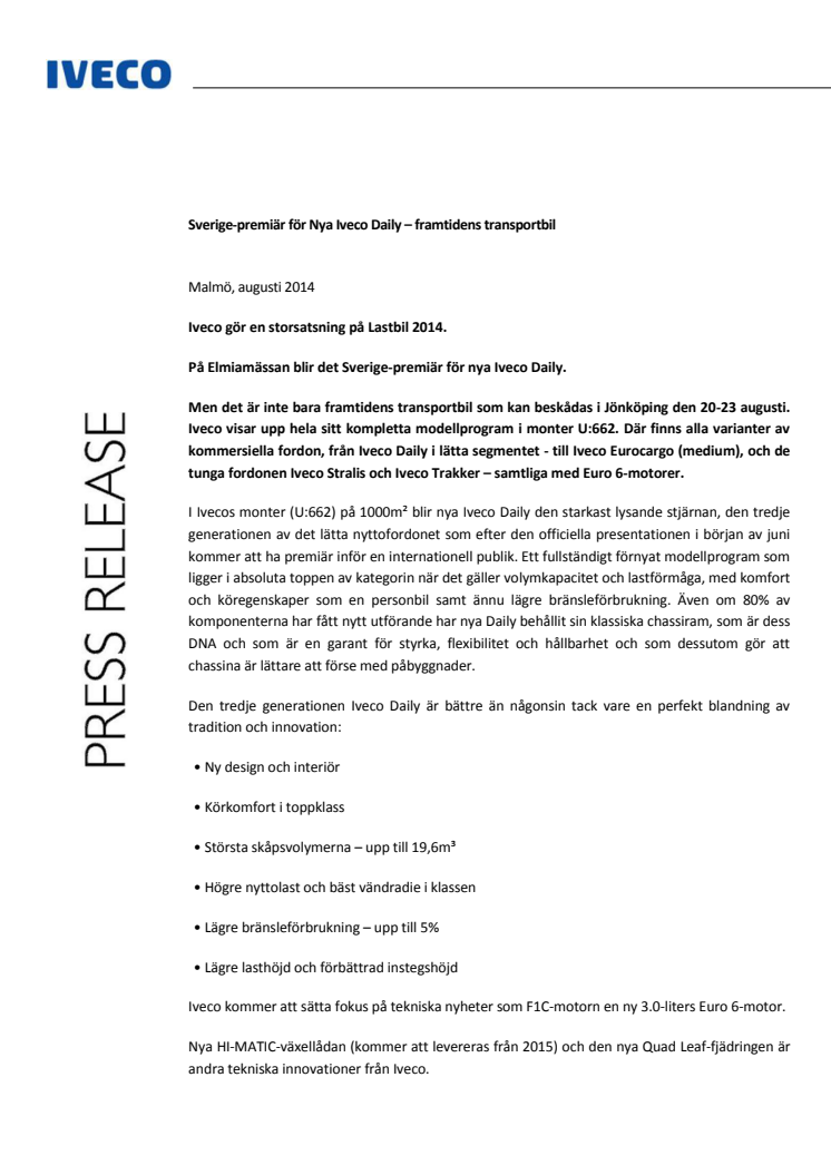 Sverige-premiär för Nya Iveco Daily – framtidens transportbil