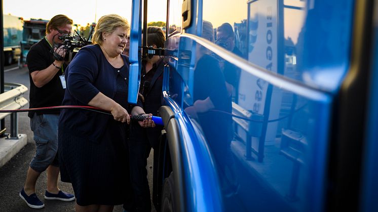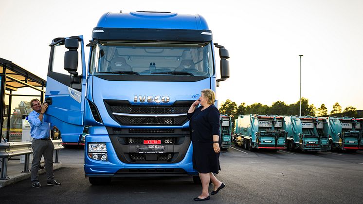 Den norska statsministern, Erna Solberg, ankom ståndsmässigt i en gasdriven Iveco Stralis NP då hon officiellt invigde det som har kallats ”Den magiska fabriken” i Rygg Miljøpark i norska Tønsberg på tisdagskvällen.