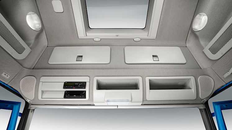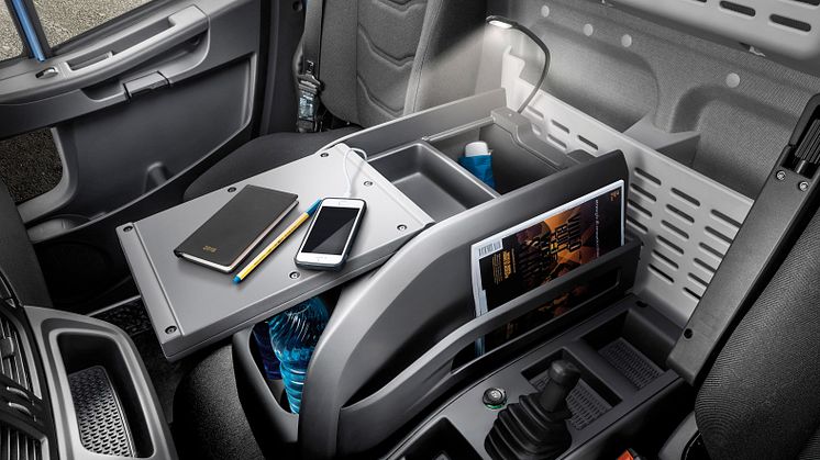 Invändigt förmedlar lastbilen en känsla av rymd och rörelsefrihet: det har blivit enklare att förflytta sig från förar- till passagerarstolen och att ta sig igenom hytten tack vare den platta, kompakta mittkonsolen och den mindre motortunneln. På så vis kan föraren lätt ta sig ut och ned på både höger och vänster sida.