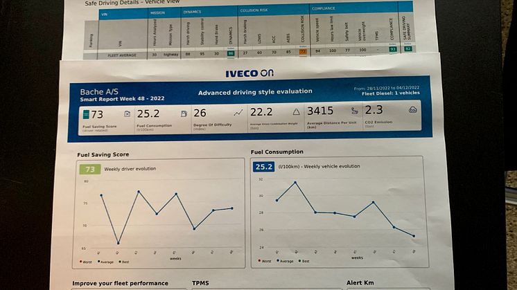 IVECO ON hjälper både verkstad, förare och åkeri att hålla koll på bland annat fordonets bränsleförbrukning, tomgångskörning och CO2-utsläpp. Tjänsten ger också vagnparksägaren större möjligheter att vägleda sina förare till optimal körning och en mer effektiv bränsleförbrukning, vilket är fördelaktigt för både miljön och företagets ekonomi.