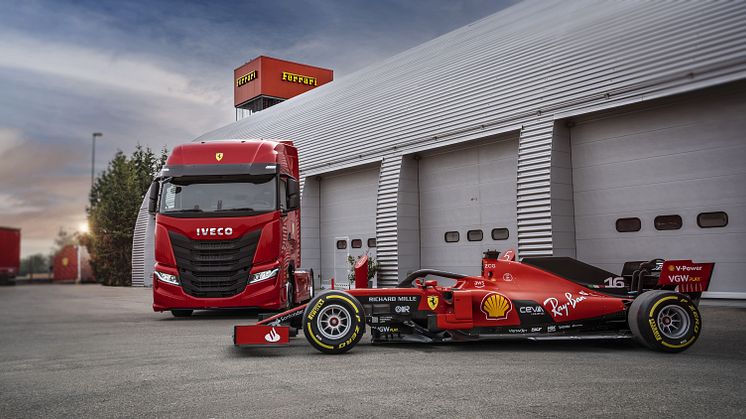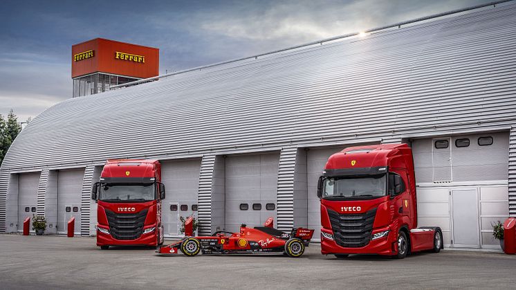 De två IVECO S-Way-lastbilarna kommer att ingå i IVECO-vagnparken som levereras till Scuderia Ferrari och ska att användas för transport av Formel 1-teamets bilar och utrustning till VM-banorna.