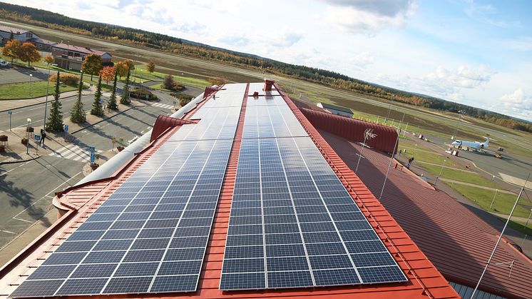 I oktober börjar solcellerna på flygplatsen att producera el och den beräknade årsproduktionen är på dryga 200 000 kWh vilket motsvarar årsförbrukningen för 14 normalstora villor. Den el som produceras på flygplatsen kommer till största del användas direkt av flygplatsen, men vid tillfällen när produktionen överstiger flygplatsens behov säljs överskottet av el vidare.