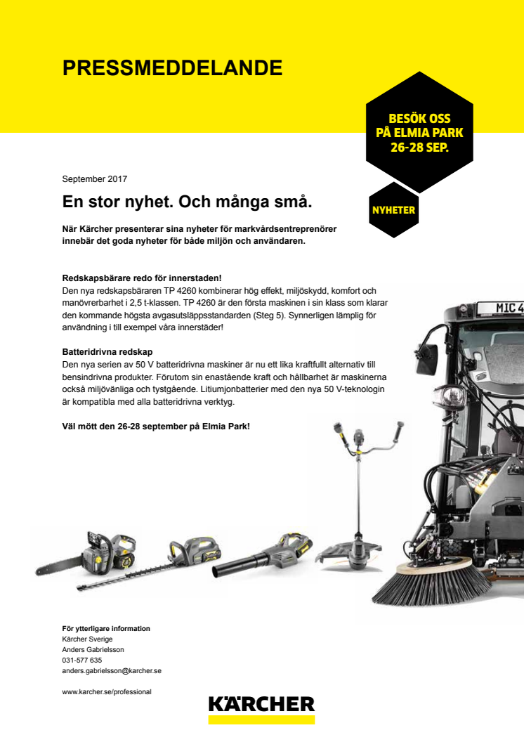 När Kärcher presenterar sina nyheter för markvårdsentreprenörer innebär det goda nyheter för både miljön och användaren.