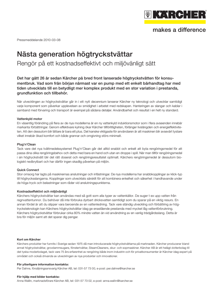 Det har gått 26 år sedan Kärcher på bred front lanserade högtryckstvätten för konsumentbruk. Vad som från början närmast var en pump med ett enkelt bärhandtag har med tiden utvecklats till en betydligt mer komplex produkt med en stor variation i prestanda, grundfunktion och tillbehör.