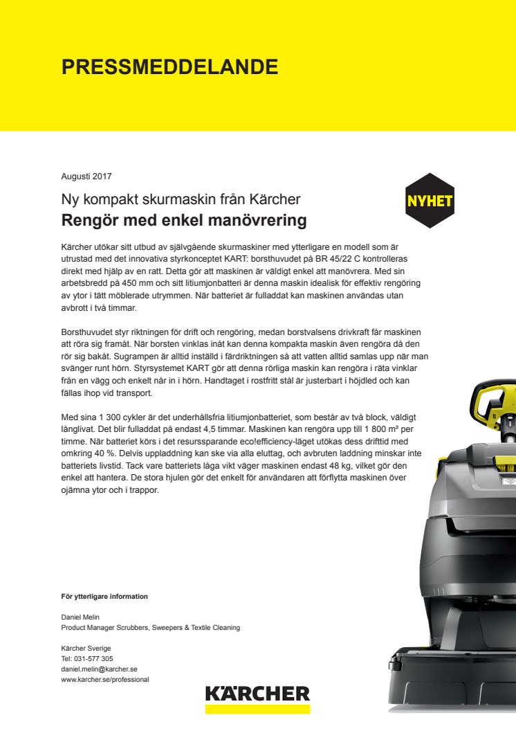 Kärcher utökar sitt utbud av självgående skurmaskiner.