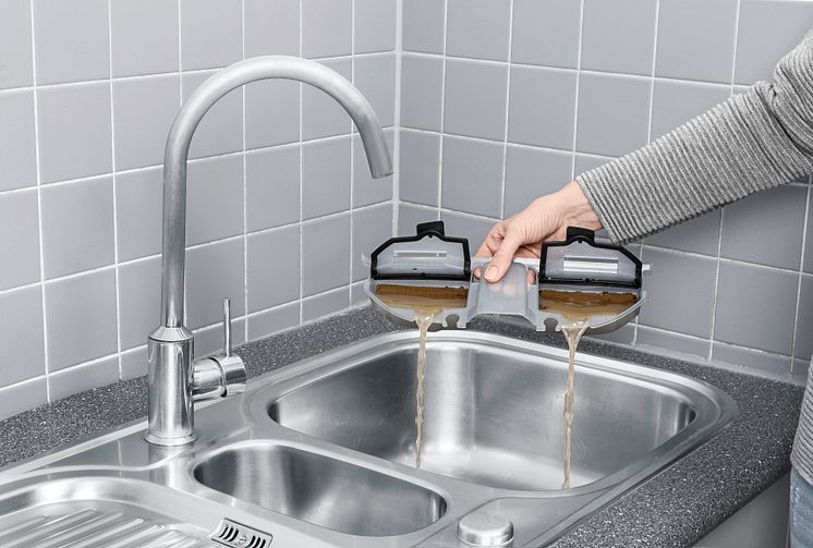 Batteridrivna FC 3 har två roterande mikrofibervalsar som kontinuerligt fuktas med rent vatten och överför smutsen till en smutsvattentank som är enkel att tömma.