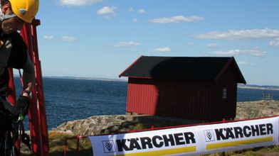 Denna typ av projekt är något som tilltalar Kärcher och därför ställde de en HDS 1000 BE och annan kringutrustning till förfogande för klätterspecialisterna. Förra året deltog Kärcher i ett liknande projekt när Turning Torso i Malmö skulle rengöras. Att båda byggnaderna måste tvättas en så relativ kort tid efter att de uppförts väcker tankar om hur aggressiv miljö de faktiskt exponeras för och följaktligen hur effektiv och miljövänlig högtrycksrengöring är.