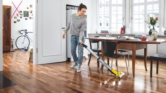 Glöm alla sladdar som är i vägen när du städar. Batteridrivna FC 3 från Kärcher drivs av ett kraftfullt litiumjonbatteri som laddas upp på fyra timmar och har en drifttid på cirka 20 minuter – vilket räcker till noggrann rengöring av en yta på omkring 60 kvadratmeter. Den fungerar dessutom på alla sorters hårda golv. Klinker, vinylgolv eller ömtåliga trägolv spelar ingen roll. Kärchers FC 3 rengör alla ytor grundligt. Enheten används tillsammans med något av Kärchers särskilda golvrengöringsmedel och har en låg vattenförbrukning som gör golvet möjligt att beträda inom bara två minuter. Kärcher har fyra olika specialrengöringsmedel för hårda golv: För lackade eller förseglade trägolv, för oljade eller vaxade trägolv, för stengolv samt universalrengöring för alla typer av hårda golv.