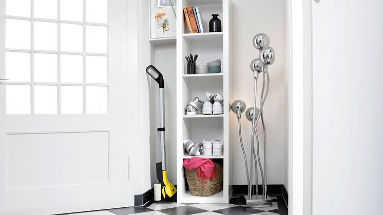 De eldrivna mikrofibervalsarna roterar med en hastighet på 500 varv per minut och får det nästan att kännas som om golvtvätten FC 3 rör sig längs golvet för egen maskin. Glöm allt slit med skurande, släpande på vattenhinkar och att behöva flytta runt på möblerna. Batteridrivna FC 3 har en flexibel led som gör den extremt lättmanövrerad, för enkel rengöring under soffor, skåp, sängar och liknande. Batteridrivna FC 3 har en slimmad design och en praktisk förvaringsstation för valsarna som gör den lätt att förvara i det lilla hemmet, i städskåpet, garderoben eller andra ekonomiutrymmen.
