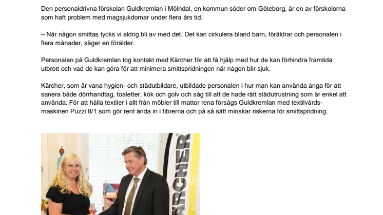 Personalen på Guldkremlan tog kontakt med Kärcher för att få hjälp med hur de kan förhindra framtida utbrott och vad de kan göra för att minimera smittspridningen när någon blir sjuk.