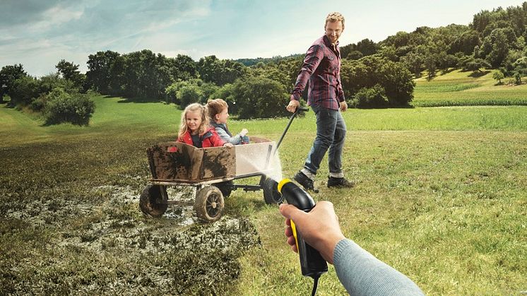 Vattenstrålen är avsedd för snabb rengöring av cyklar, barnvagnar m.m. Fritidsutrustning kan rengöras direkt på plats, t.ex. på skogsparkeringar. På så sätt kan du se till att allt är rent innan det stuvas undan.