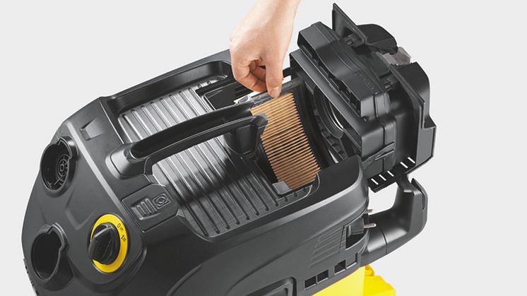 Kärchers premiummodeller är utrustade med det unika filterrengöringssystemet ExPress. Förlorad sugeffekt som orsakas av igensatta filterporer och som måste rengöras manuellt tillhör nu det förgångna. Genom ett tryck på filterknappen rengörs filtret på några sekunder genom extremt starka och dynamiska luftströmmar. Handhavaren behöver inte längre komma i kontakt med dammet eller drabbas av onödiga tidsförluster.