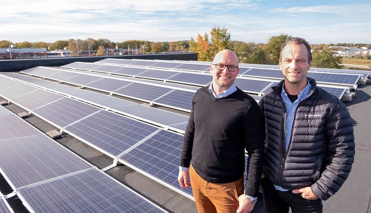 Solcellerna hålls fast med hjälp av tyngder.