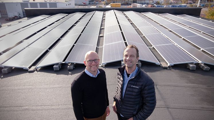 - Det är ingen jättestor anläggning, utan vi har använt 400 kvm av den lämpliga takytan för den här installationen. Ändå ger det en bra effekt, fortsätter Anders Jalmander. Det är flera lokala företag som hyr lokaler av oss på Polhemsgatan. Bland hyresgästerna finns Sport Auto, Skötselbolaget, Balck Coffee, Swegon, Input och Ängöls bryggeri. Att vi tillverkar förnyelsebar solenergi på taket på fastigheten gör att våra kunders produkter blivit lite mer lokal-producerade nu, säger Anders.