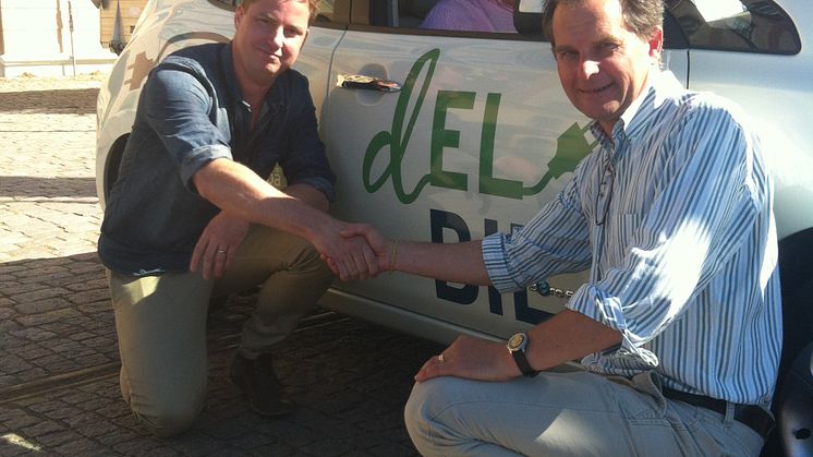 Kalmar Energi, som har projektsamordningsrollen i dELbilspoolen, har fört diskussioner med Carl-Johan Glebe på Glebes Fastighets AB angående möjligheterna med dELbil för deras hyresgäster i centrala Kalmar. Nu är beslutet fattat att Glebes Fastighets AB går in i samarbetet och möjliggör ett förvärv av en Tesla tillsammans med Kalmar läns museum. Alla avtal och överenskommelse är klara och handpenning betald till Tesla. Leveransen är utlovad efter semestern från USA.