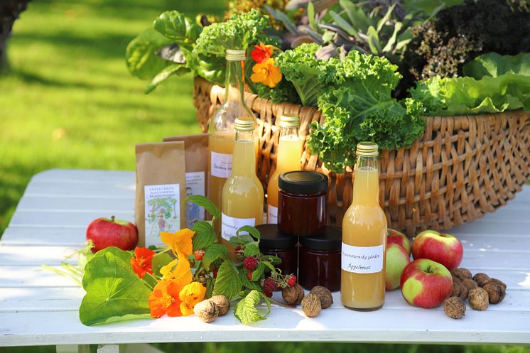 Besökare kan handla frukt, valnötter och förädlade produkter som must och te, allt är odlat och tillverkat på plats. Caféet håller öppet med höstinspirerade godsaker. Från klockan 13 spelar EMO-trion levande jazz i trädgården.