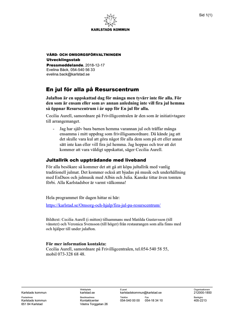 Julafton är en uppskattad dag för många men tyvärr inte för alla. För den som är ensam eller som av annan anledning inte vill fira jul hemma så öppnar Resurscentrum i år upp för En jul för alla.