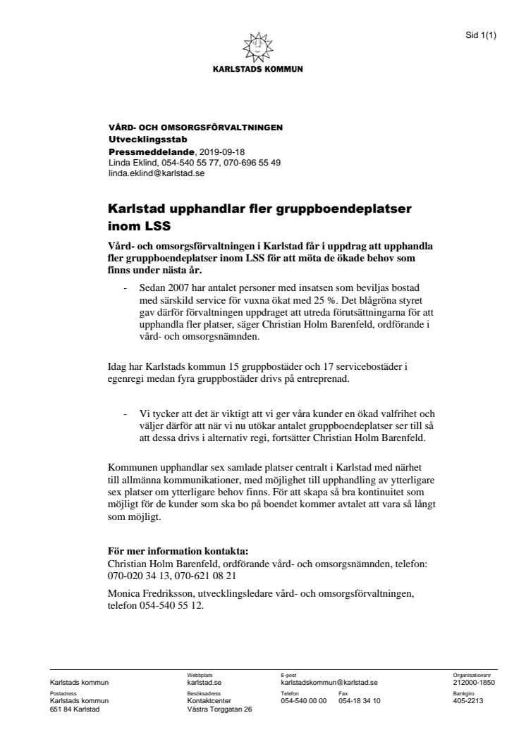 Karlstad upphandlar fler gruppboendeplatser inom LSS