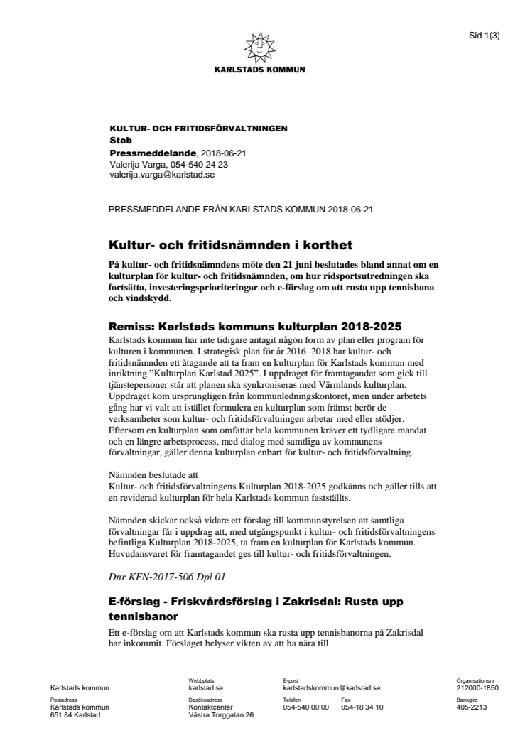 Kultur- och fritidsnämnden i korthet 21 juni