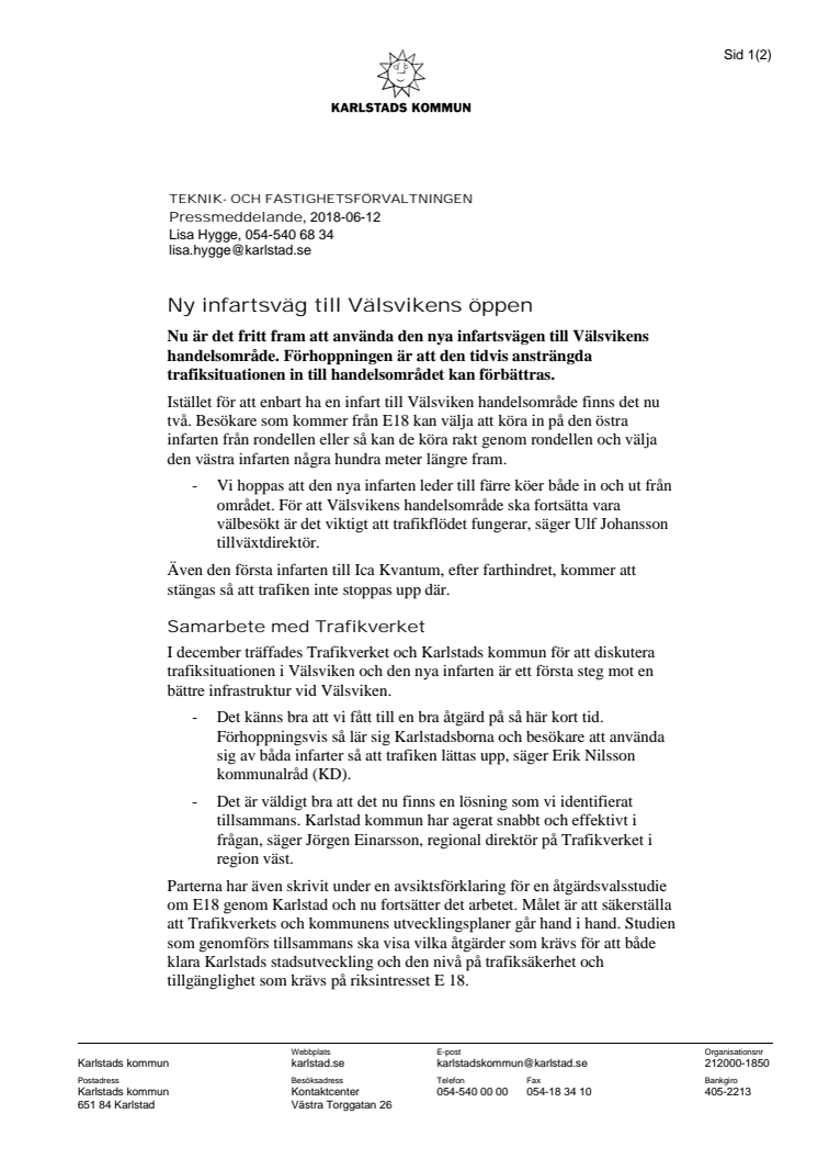 Nu är det fritt fram att använda den nya infartsvägen till Välsvikens handelsområde. Förhoppningen är att den tidvis ansträngda trafiksituationen in till handelsområdet kan förbättras.