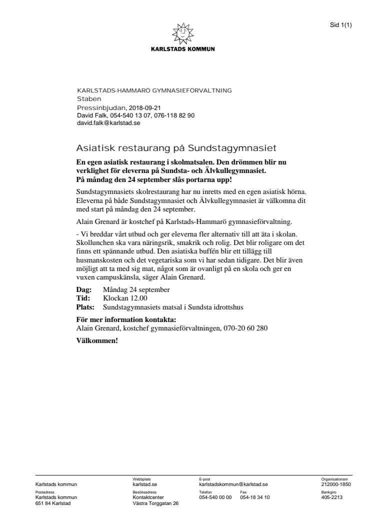 Pressinbjudan: Asiatisk restaurang på Sundstagymnasiet