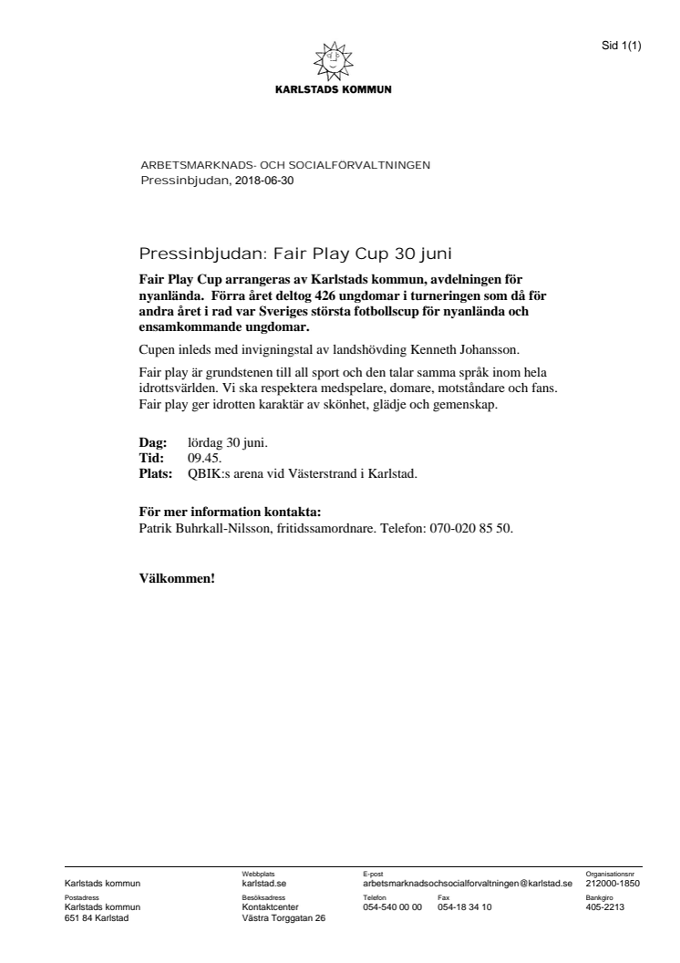 Fair Play Cup arrangeras av Karlstads kommun, avdelningen för nyanlända. Förra året deltog 426 ungdomar i turneringen som då för andra året i rad var Sveriges största fotbollscup för nyanlända och ensamkommande ungdomar.