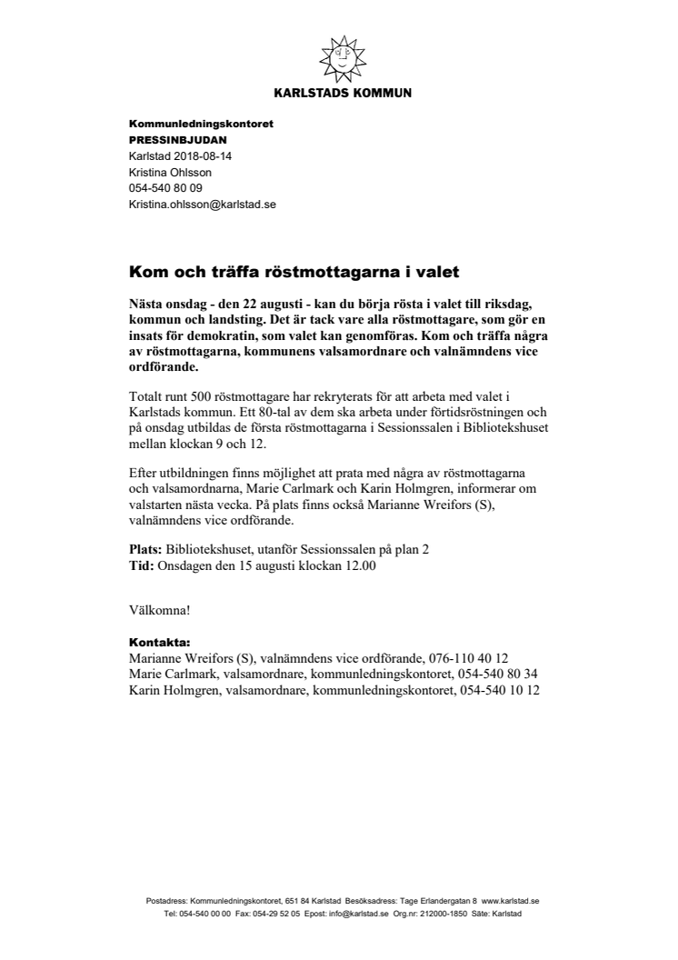 Pressinbjudan: Kom och träffa röstmottagarna i valet
