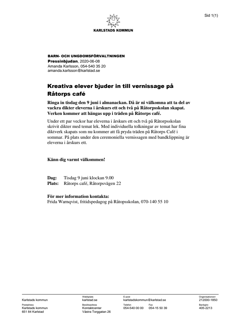 Pressinbjudan: Kreativa elever bjuder in till vernissage på Råtorps café
