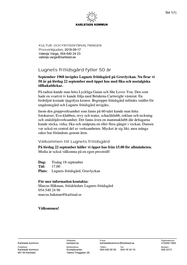 Pressinbjudan: Lugnets fritidsgård fyller 50 år