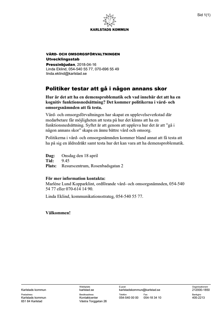 Pressinbjudan: Politiker testar att gå i någon annans skor