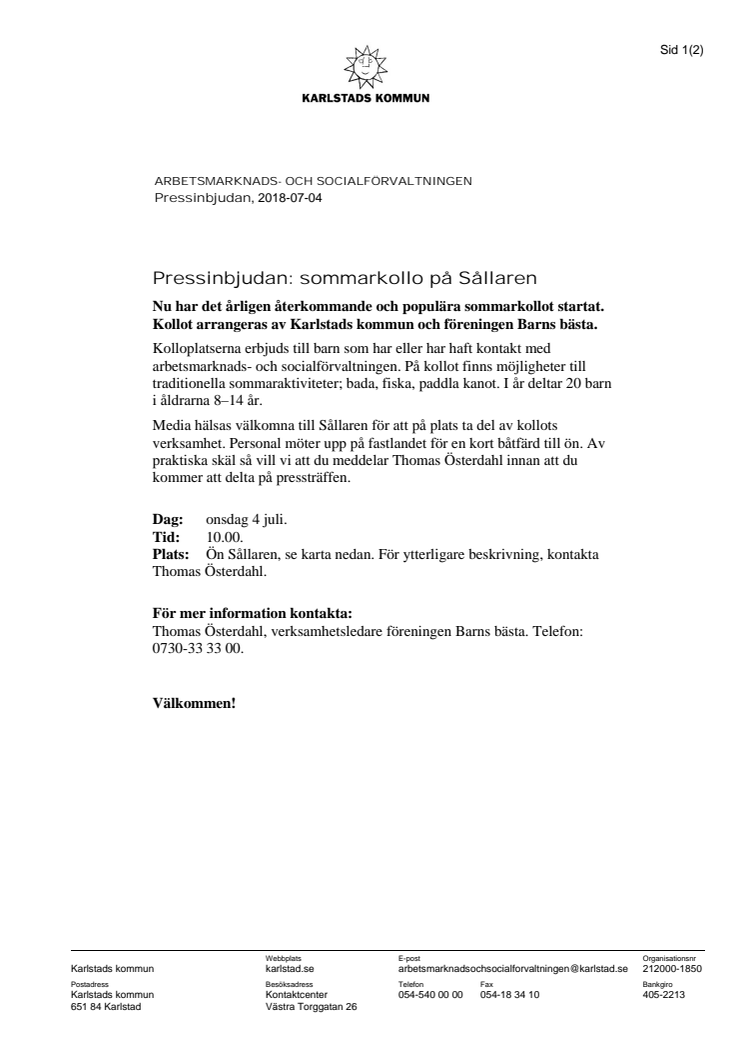 Pressinbjudan: sommarkollo på Sållaren 4 juli