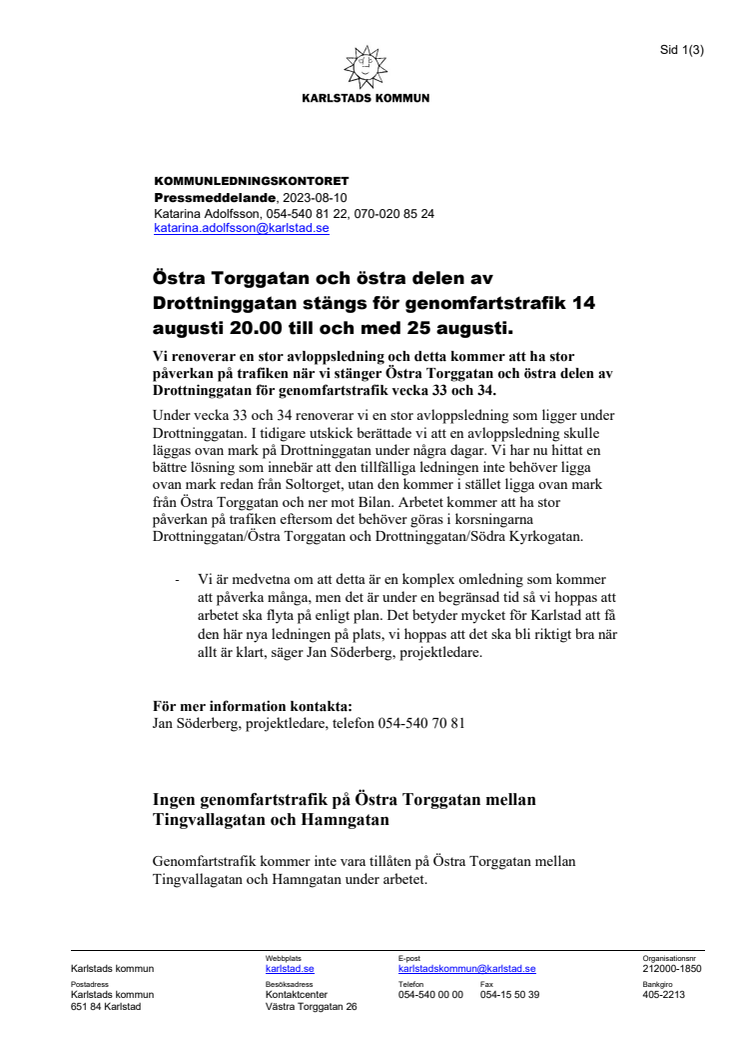 Pressmeddelande Östra Torggatan och östra Drottninggatan stängs för genomfartstrafik.pdf