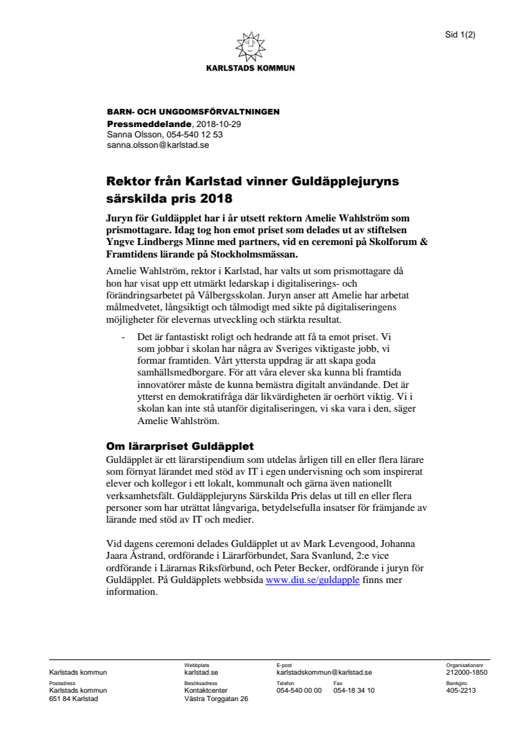Rektor från Karlstad vinner Guldäpplejuryns särskilda pris 2018