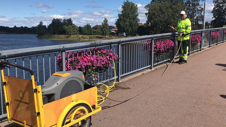 Dimitar Pigov på teknik- och fastighetsförvaltningen vattnar